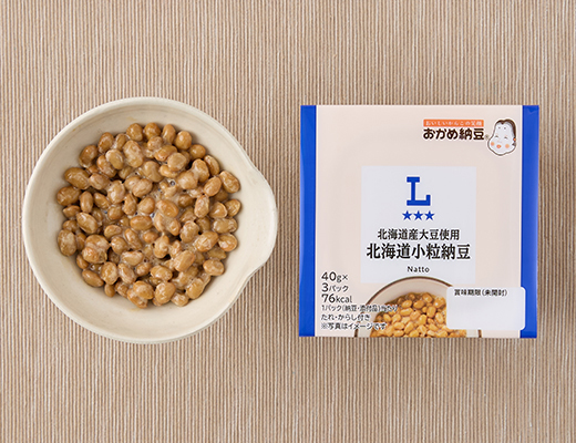 Natto with a chewy, mochi-like texture made from Hokkaido soybeans.