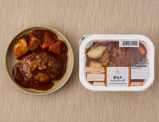 Hamburg steak slowly seared over direct heat, with a demi-glace sauce made from meat glaze.