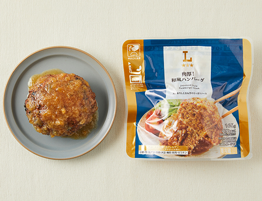 A thick Japanese-style Hamburg steak finished with a refreshing sauce made from grated daikon and onions.