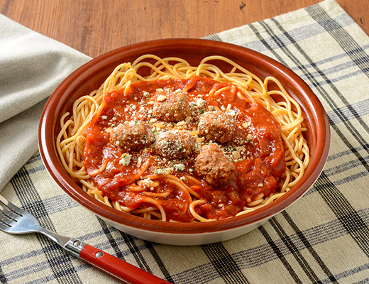 Garlic-kissed tomato sauce with chunky, juicy meatballs!