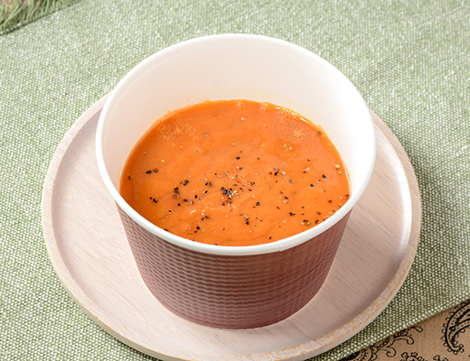 A lobster bisque with the rich flavors of lobster, tomatoes, and aromatic vegetables.
