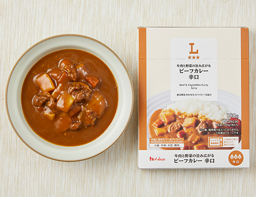 A well-balanced, spicy curry blending beef umami with the mellow flavor of vegetables, seasoned with spices. Microwaveable.