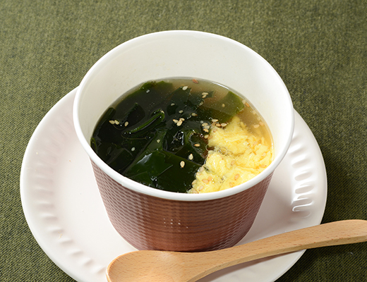 A simple Japanese-style soup finished with Sanriku wakame, egg drop, and vermicelli.