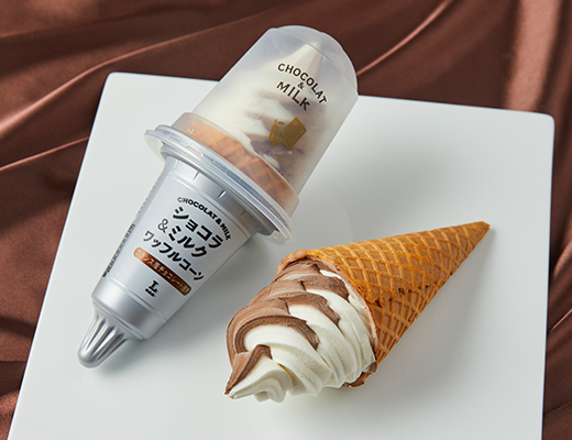Chocolate ice cream crafted with premium French chocolate, and a waffle cone ice cream crafted with premium dairy ingredients.