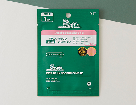 VT COSMETICS' best-seller is now a single-sheet mask. The ultra-thin 0.2mm sheet adheres well and provides hydration in just 10 minutes without stickiness.