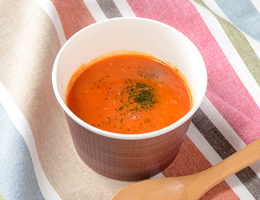 One serving contains the equivalent of 1.5 tomatoes! A creamy potage that captures the umami, tanginess, and sweetness of ripe tomatoes.