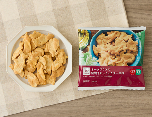 A non-fried snack with a crisp, hard-baked texture and a two-cheese flavor.