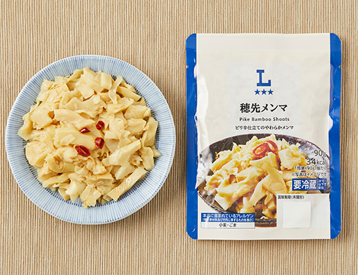 Tender-tip menma seasoned with chili oil and sesame oil for a spicy kick.