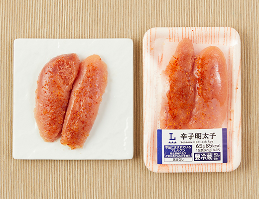 No artificial coloring; a spicy cod roe that highlights the umami of dashi and the heat of chili.