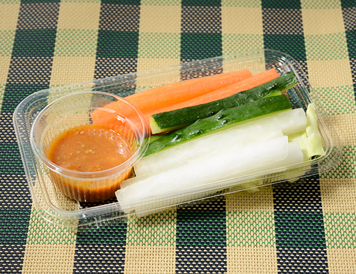 Daikon, carrot, cucumber, and cabbage are served with our original sesame oil-infused spicy miso dip. The sweet-and-spicy miso sauce makes it a perfect snack.