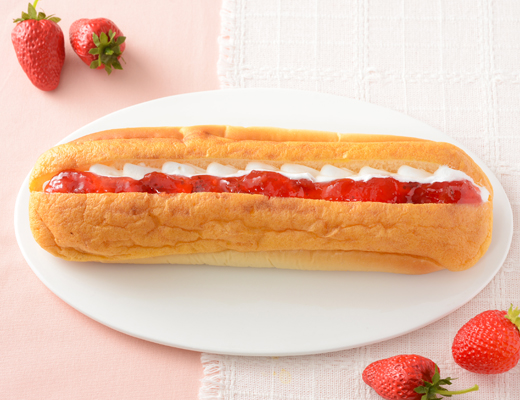 Fluffy choux roll filled with strawberry sauce containing real strawberry pieces and milk whipped cream. Enjoy the sweet-tart strawberry flavor.