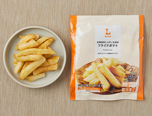 Fries made with sweet Hokkaido potatoes. To let their natural sweetness shine, salt is kept light. Thick-cut for a fluffy, starchy texture.