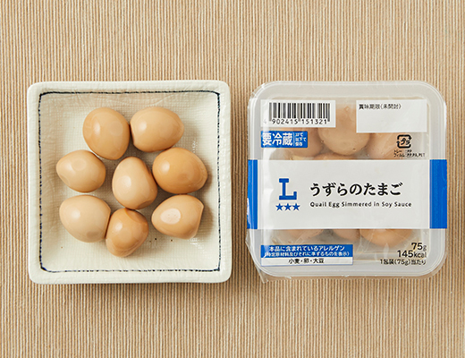 Quail eggs seasoned with soy sauce.