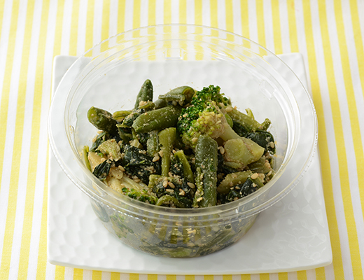 A simple sesame-dressed salad featuring five kinds of green vegetables.