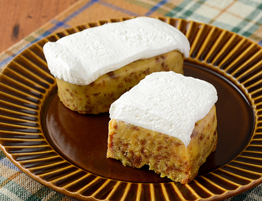 A one-handed treat featuring moist banana cake with cream.