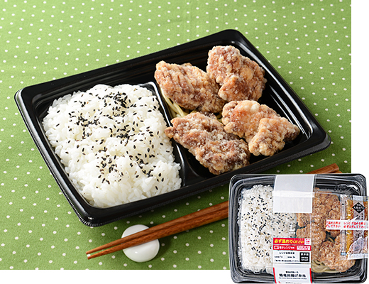 Chicken Tatsuta-age made with a rich, umami re-fermented soy sauce. Coated to keep a natural, lightly flour-dusted crust. Finished with fresh grated-daikon ponzu, a chilled-bento specialty that pairs perfectly with the chicken and rice.